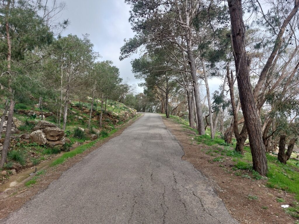 La route qui monte jusqu’au mont est un cul de sac, l’accès aux 3 derniers kilomètres est interdit. Je suis là à 777 mètres d’altitude. D’après la carte la route monte jusqu’à 858 mètres d’altitude.