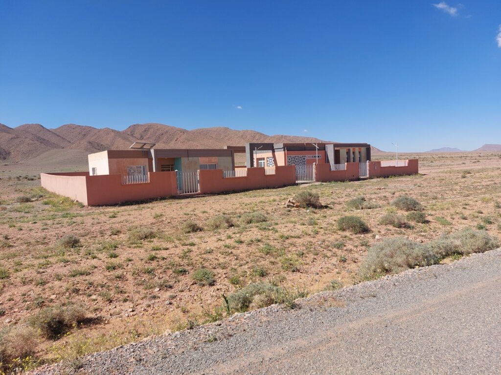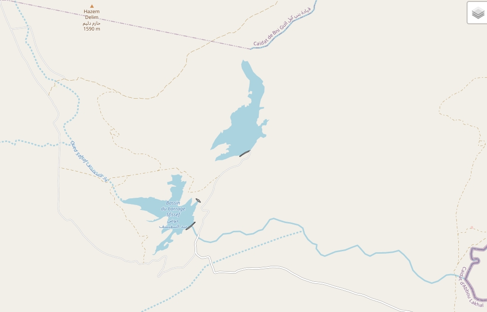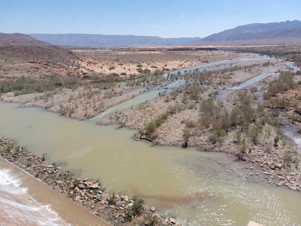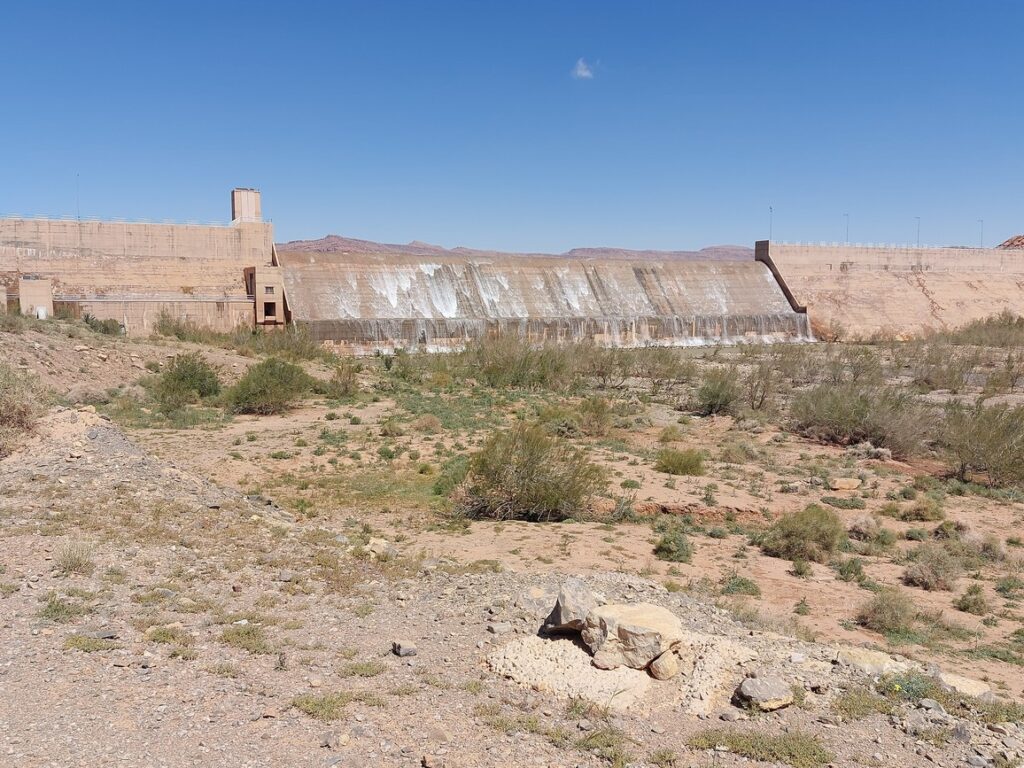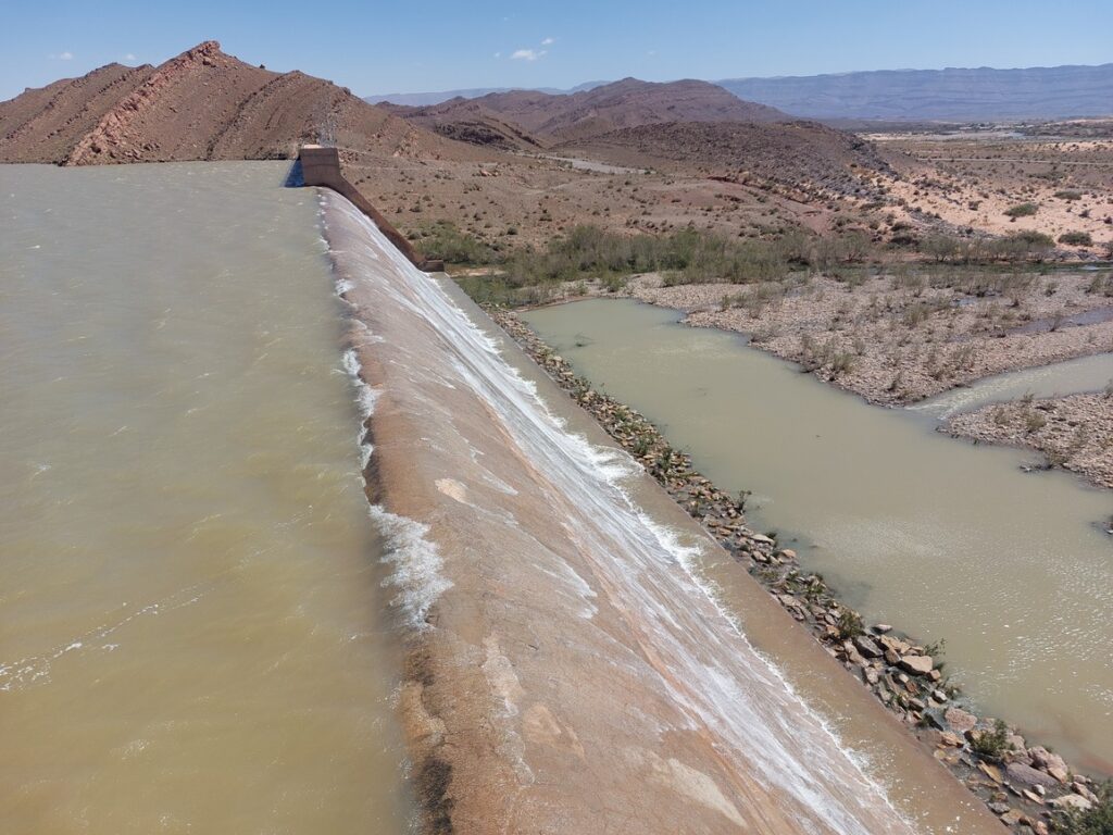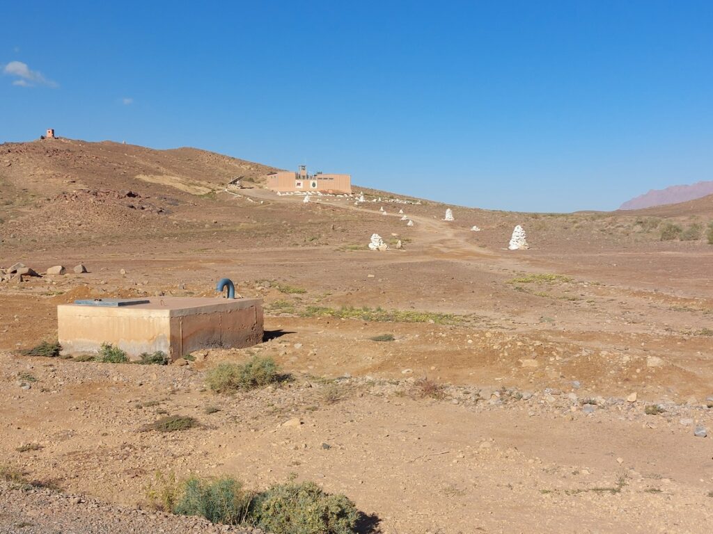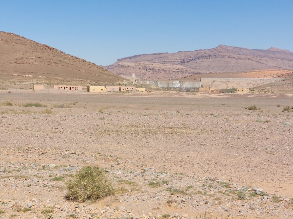 Arrivée sur le barrage de Sfissef. Au premier plan, ce doit être le village créé pour la construction du barrage, mais aujourd’hui il paraît totalement déserté.