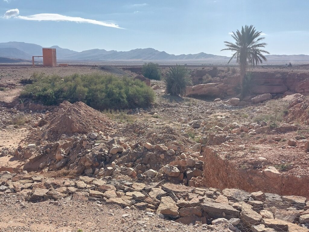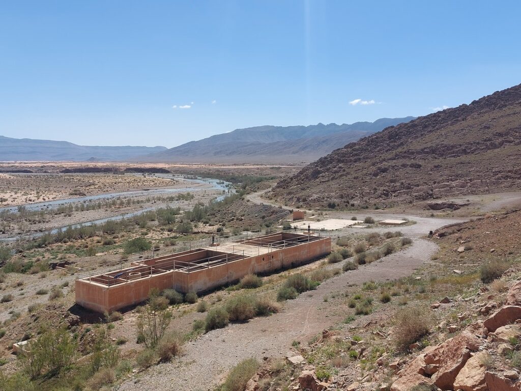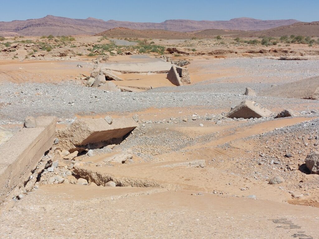 Le franchissement d’un oued nAménagement près d’une source.on identifié sur la carte. Le gué est effondré, mais il y a une piste sur le côté pour franchir l’oued à sec.
