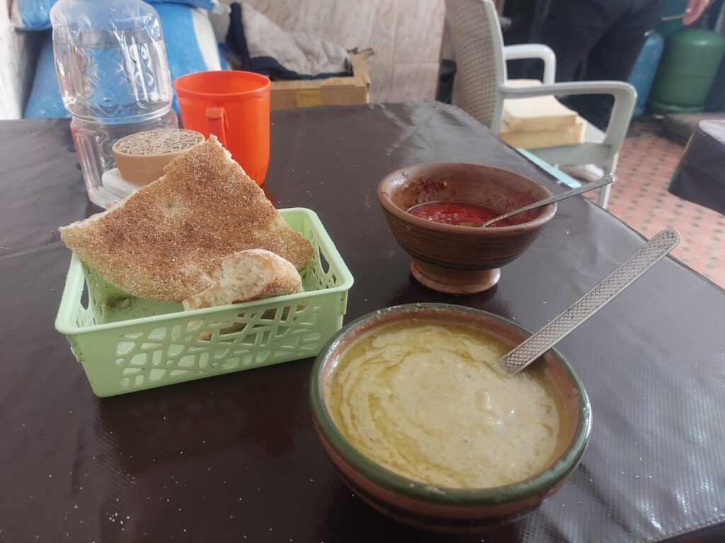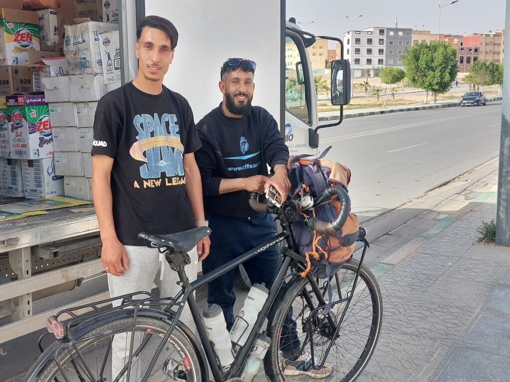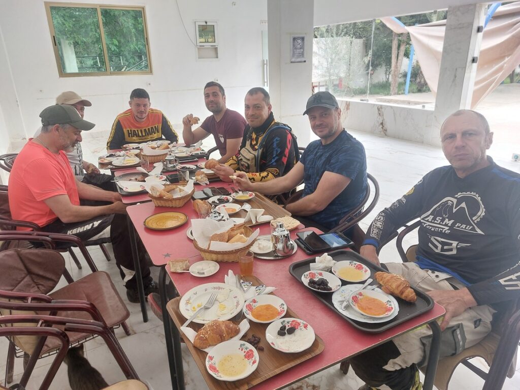 La gentillesse des Marocains pour les étrangers m’a été confirmé par un groupe de 3 motards de Lyon avec qui j’ai pris le petit déjeuner ce matin. Ils ont eu 3 crevaisons et un problème de frein hydraulique. Ils ont, à chaque fois, été dépanné sans délai, en priorité !