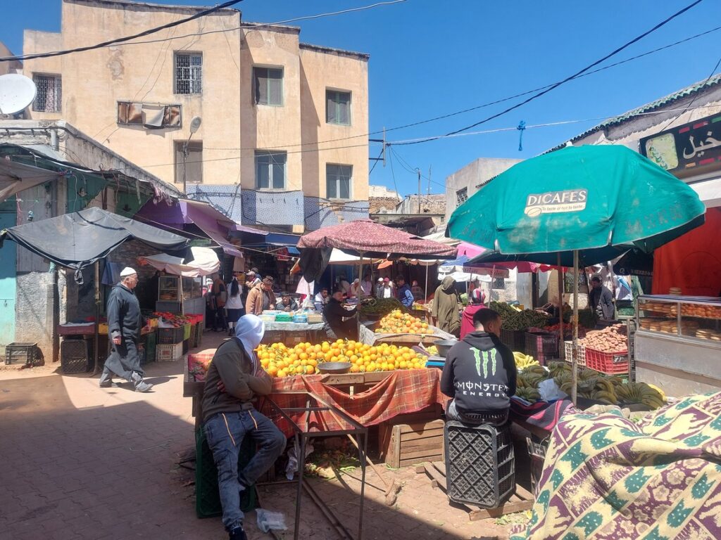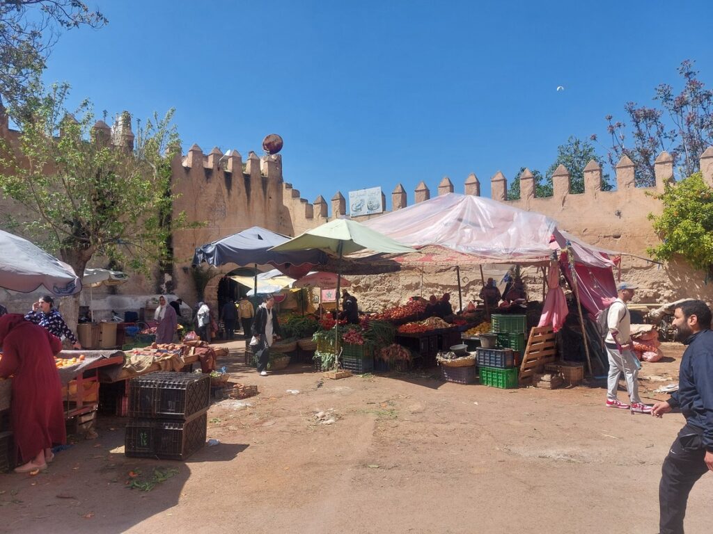 Je demande s’il y a un taxi pour Azrou, non, pas tout de suite. Je demande s’il y a des autocars. Probablement, mais la gare des autocars est un peu plus loin.