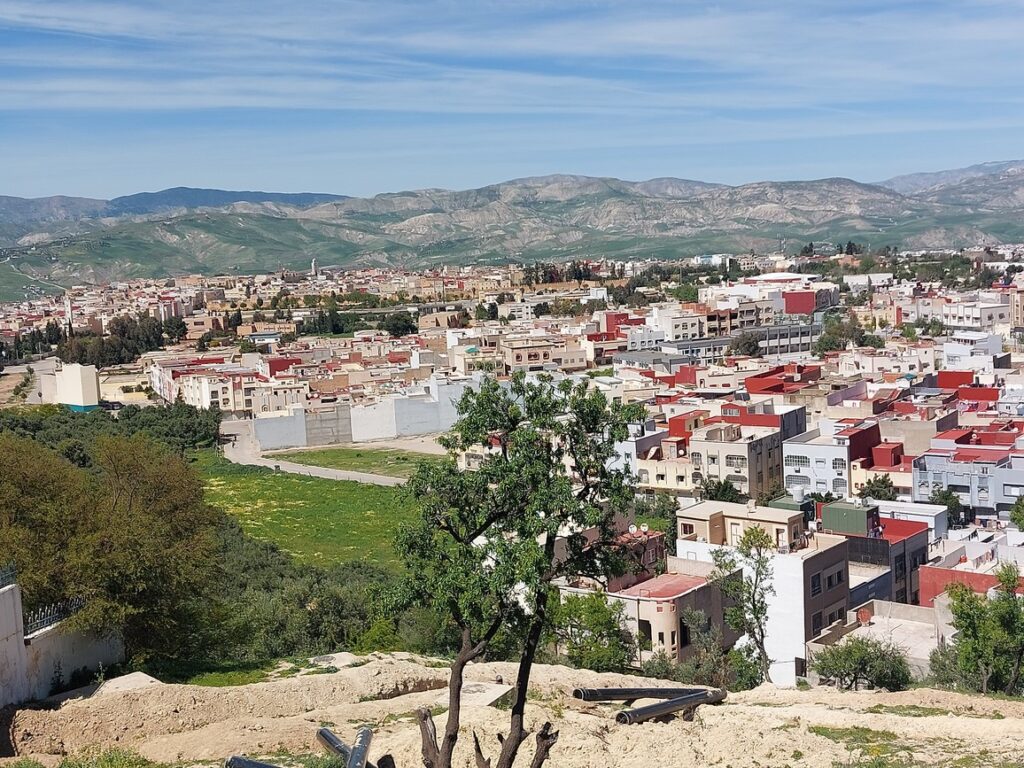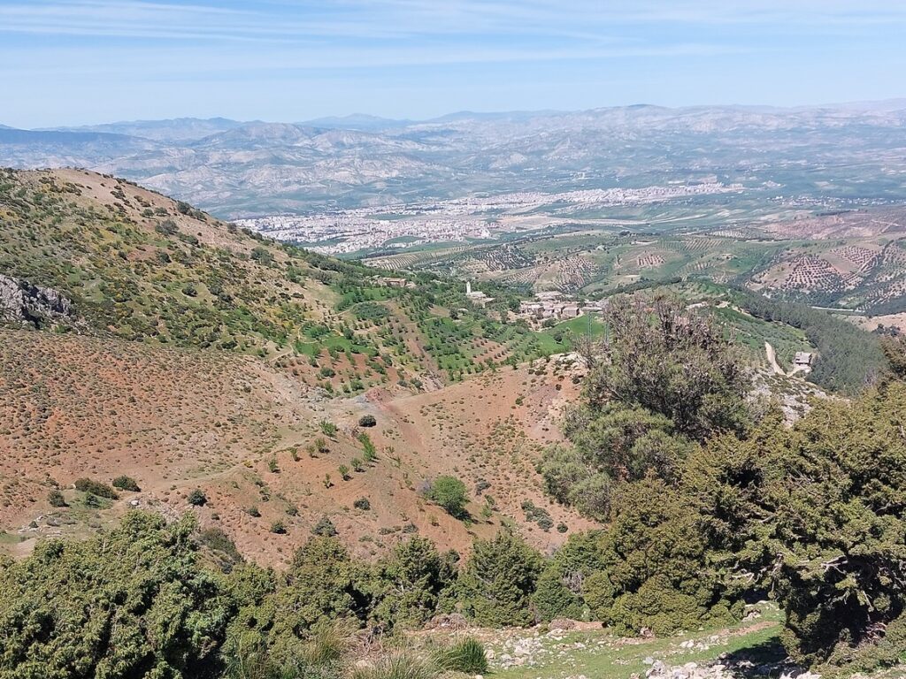 Vue sur Azrou depuis un belvédère, à côté de l’esplanade de la mosquée.