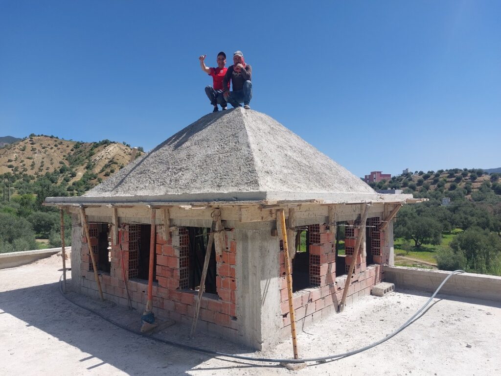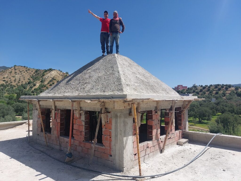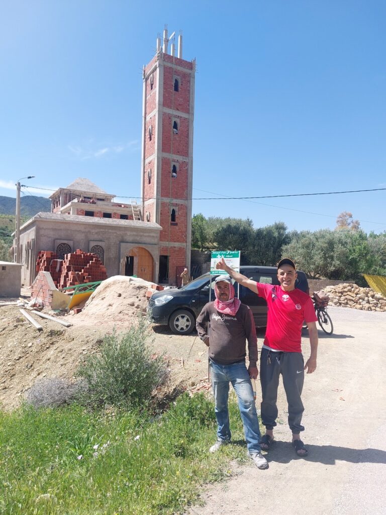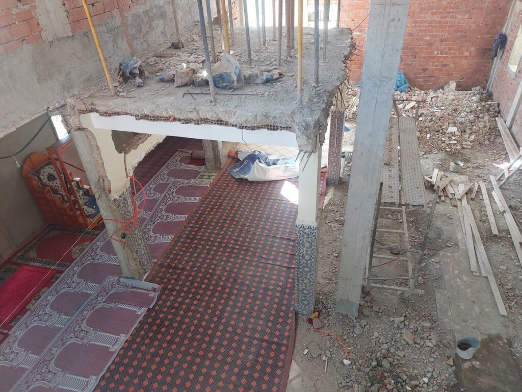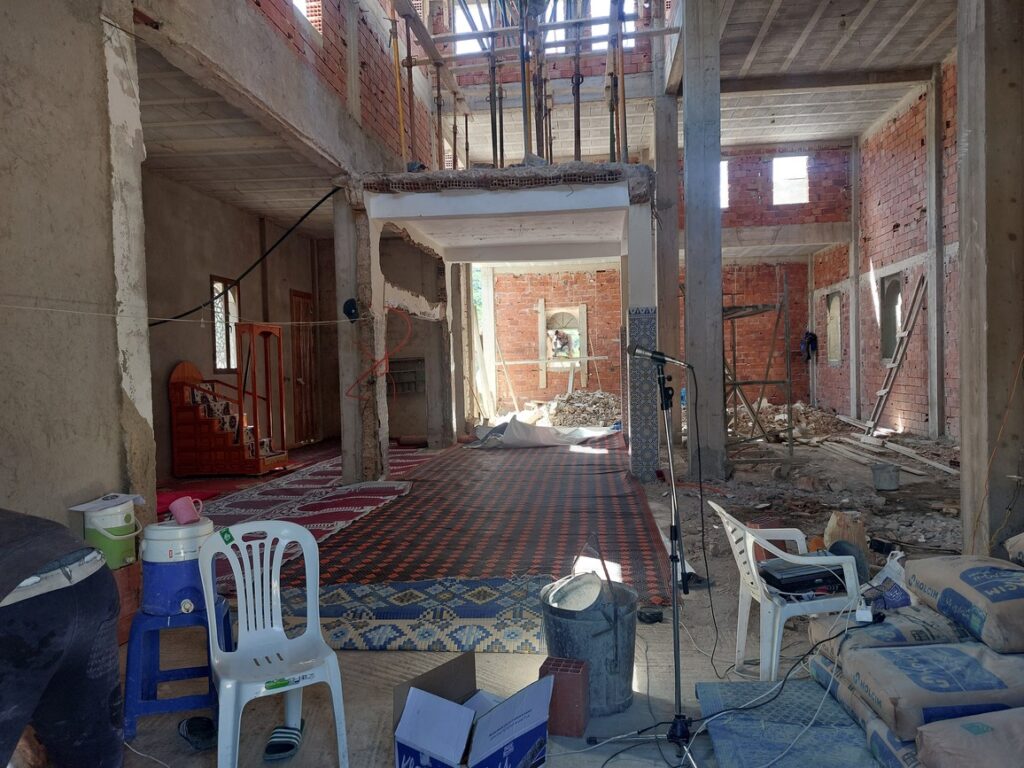 Mosquée en cours de construction., mais la salle de prière est déjà en activité.