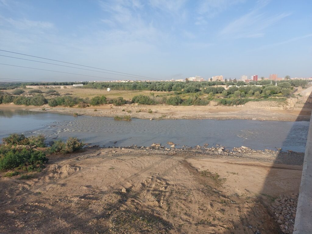 En me rendant à la gare routière, surprise, les montagnes sont toutes blanches, et l’oued très calme et très transparent. Midelt ne semble pas avoir été beaucoup arrosé, par contre, il a neigé sur les montagnes. Neige que je n’ai pas retrouvé à une cinquantaine de kilomètres de Midelt quand nous avons franchi le col à 2188 mètres.