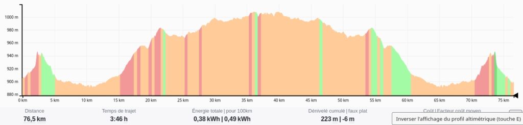Le profil de l’étape du jour, peu de dénivelé, mais un vent fort défavorable à l’aller.