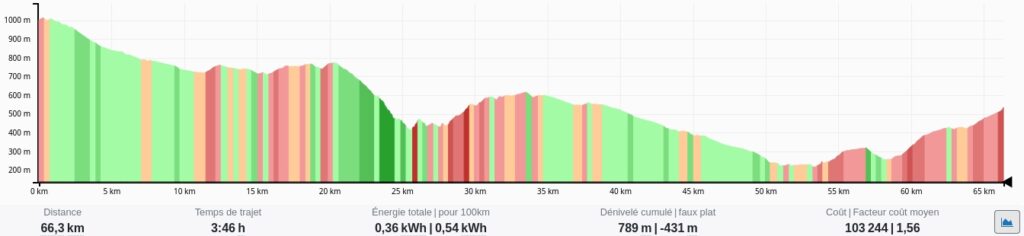 Le profil de l’étape d’aujourd’hui en passant par la montagne.