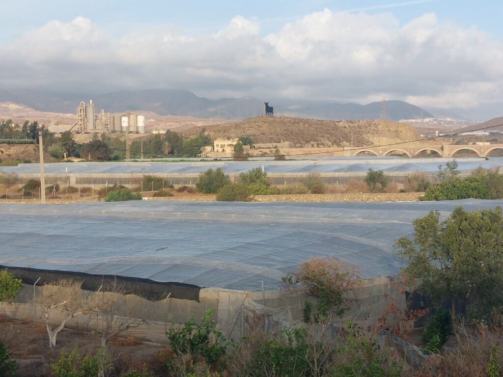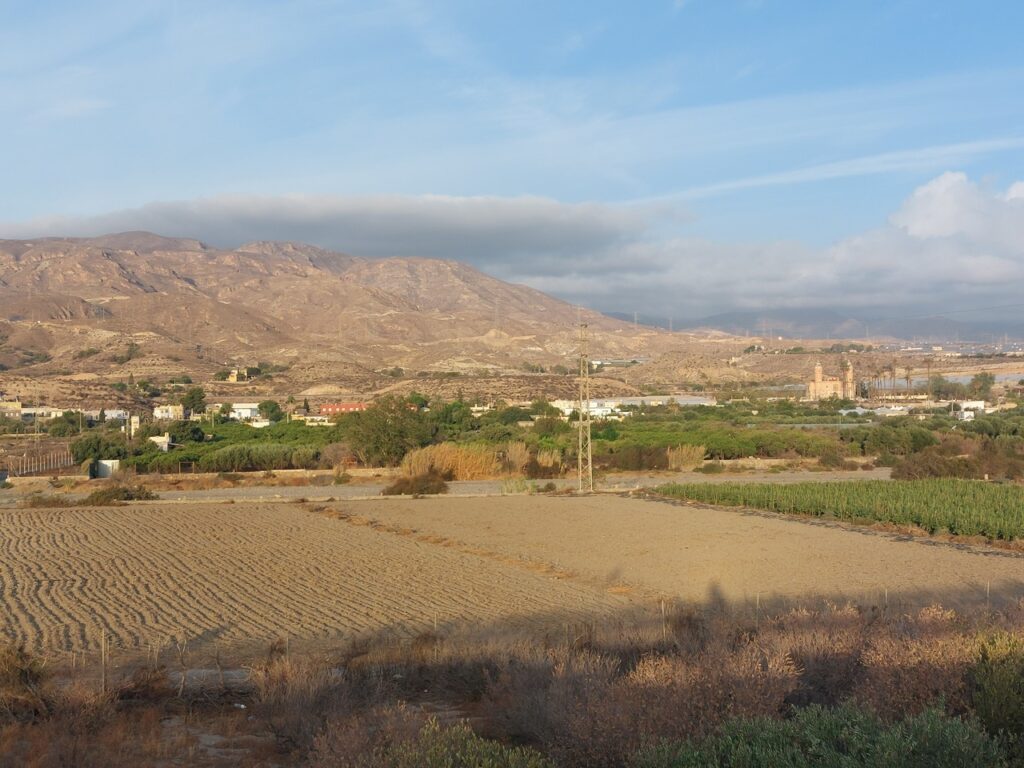 Paysage vers Alméria. On aperçoit l’hôpital, au fond.