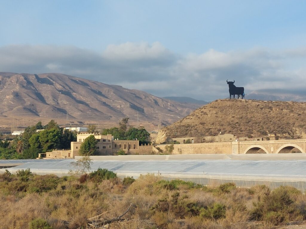 Cimenterie Holcim et taureau (je n’ai pas trouvé la signification du taureau, on élève des taureaux en andalousie, mais plutôt du côté de Séville).