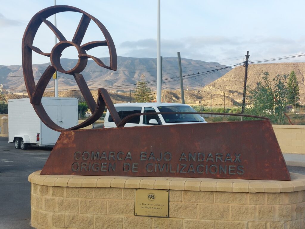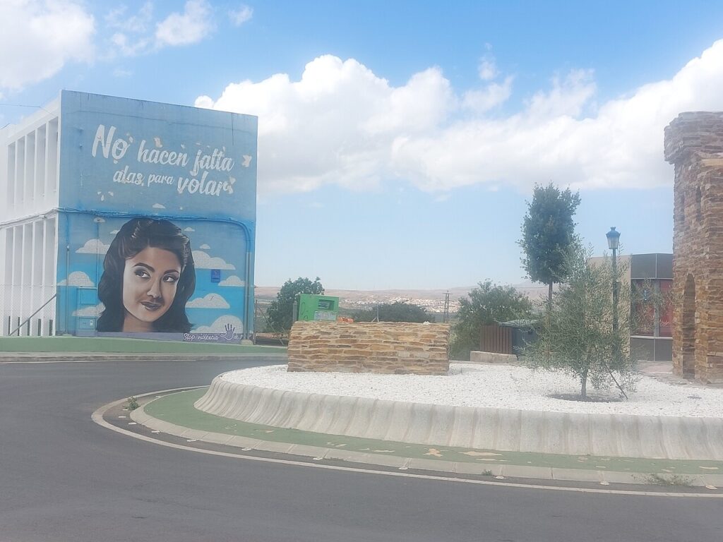 Arrivée à Abrucena. « No hacen falta alas para volar » (Il n’est pas nécessaire d’avoir des ailes pour voler). Ce mural a été réalisé par l’Association des Femmes El Castillejo et porte un message contre la violence de genre. Il s’inscrit dans une initiative locale pour promouvoir des messages de solidarité et de lutte contre les violences faites aux femmes.