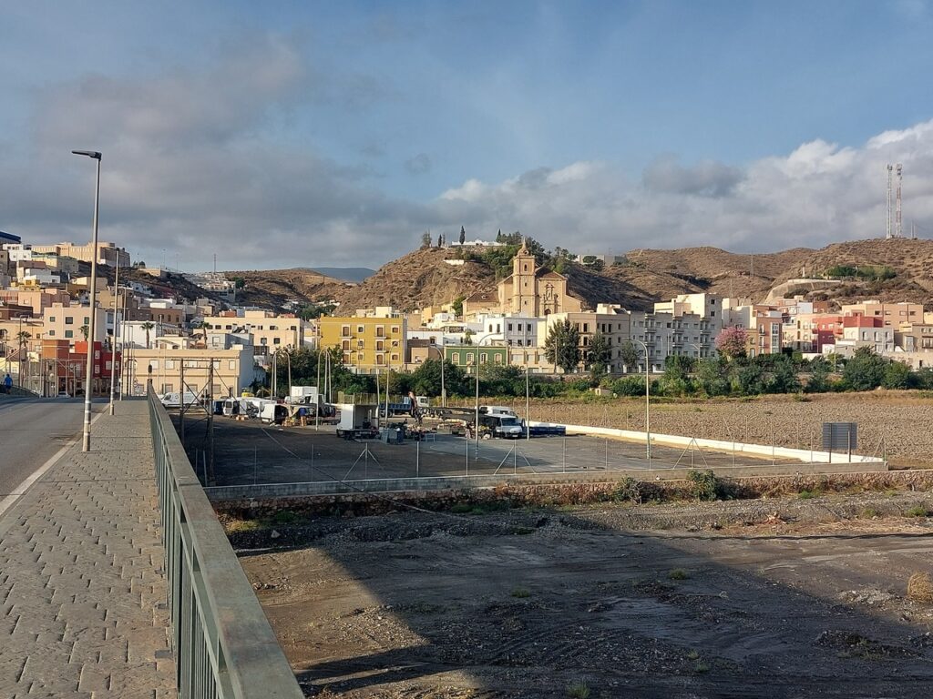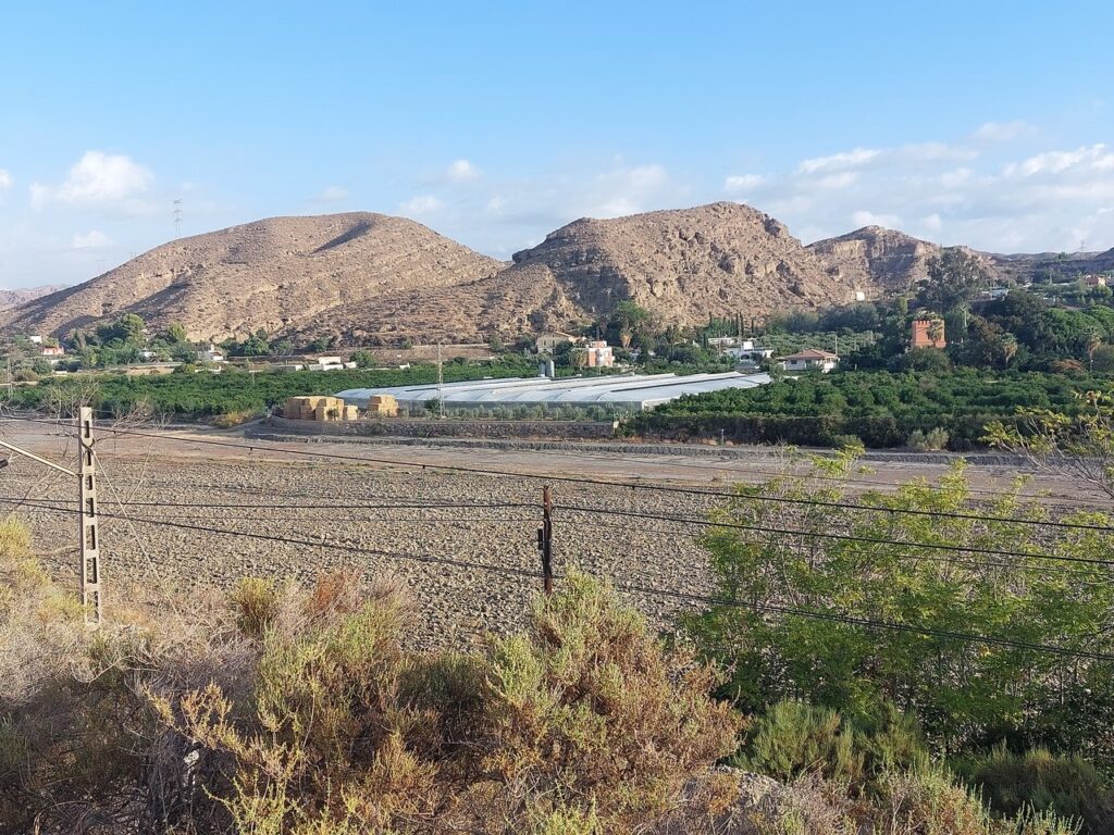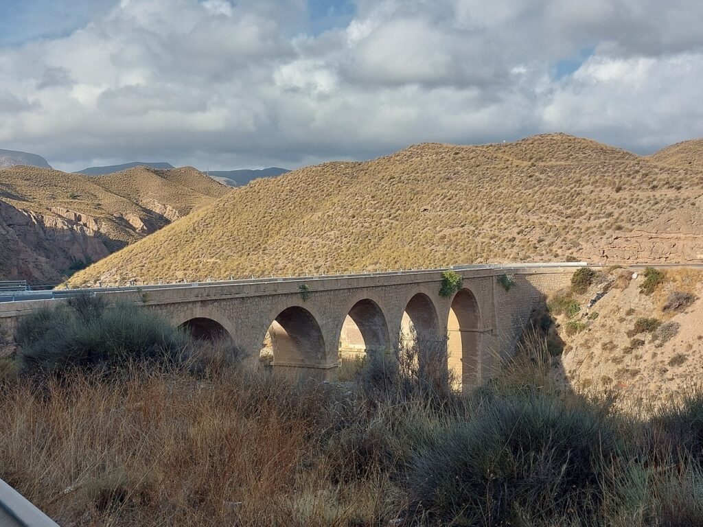Traversée du Rambla de Huechar, un torrent à sec, affluent du Rio Andarax, fleuve souvent à sec, de 67 kilomètres de long se jetant dans la mer à Alméria.