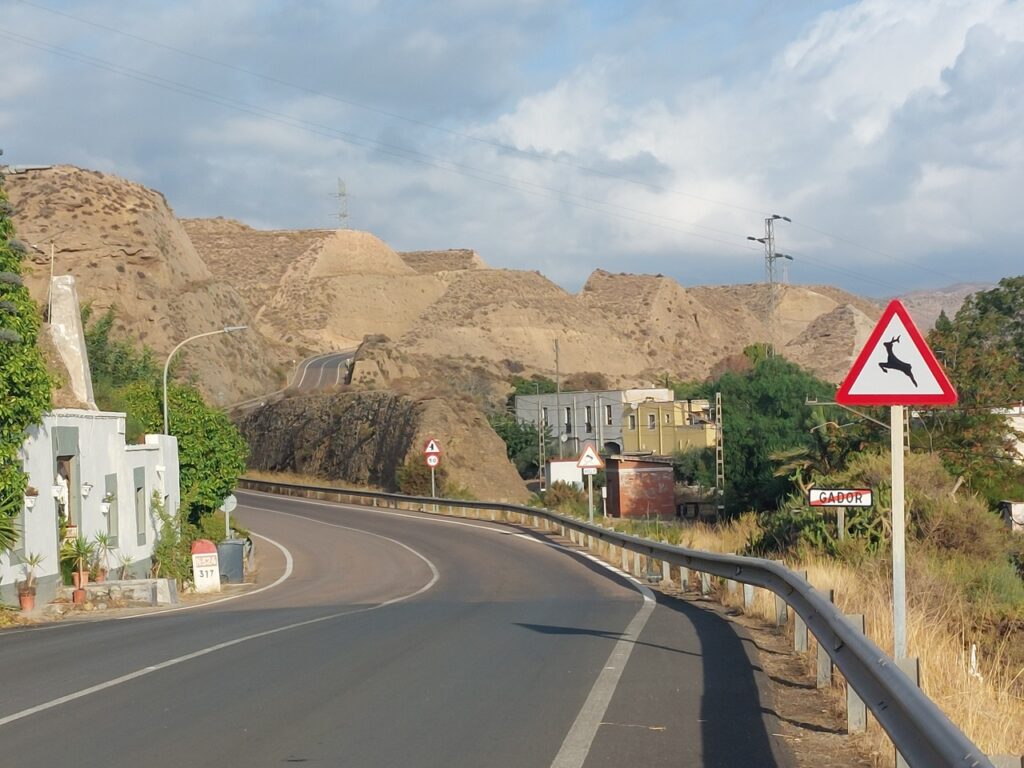 Encore un très bel itinéraire aujourd’hui. Je suis retourné dans la montagne. Je suis ce soir à 968 mètres d’altitude dans le parc naturel de la Sierra Nevada, et j’ai longé le parc naturel du désert de Tabernas que ne traverse aucune route, seule la voie de chemin de fer, Alméria-Grenade. Depuis mon entrée en Espagne, j’ai traversé des dizaines de parcs naturels.