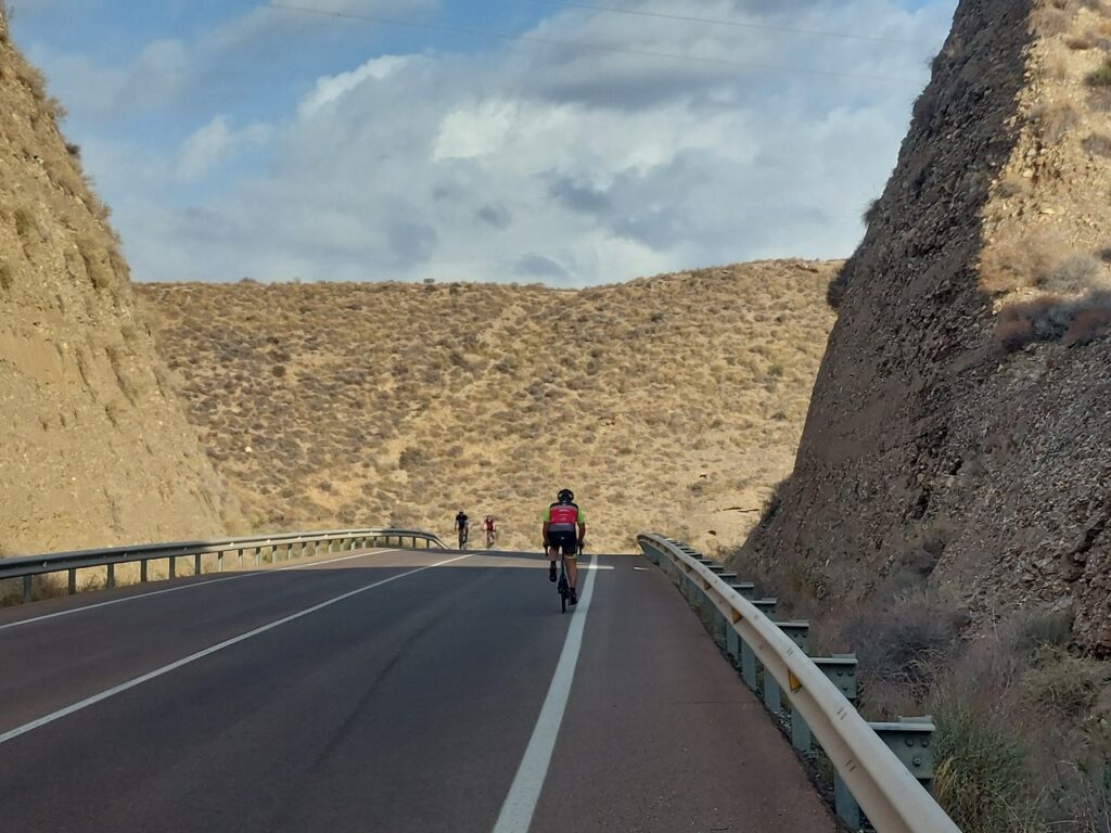 Beaucoup de cycliste pour monter jusqu’à Alhama de Alméria (500 mètres d’altitude) par cette jolie route, mais ils n’iront pas plus haut. La route est encore belle plus loin.