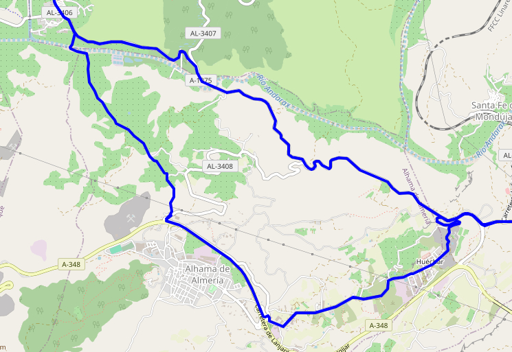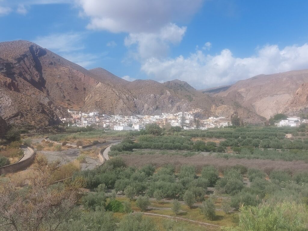 De Abla à Abrucena, il y a 2,5 km environ. Je pensais être arrivé, mais j’ai pris par le centre-ville d’Abla et choisi de rejoindre Abrucena en regardant la carte. Je suis tombé sur des côtes très très raides pour m’extraire du centre-ville (j’ai poussé mon vélo) et pour finir, un escalier avec une dizaine de marches.