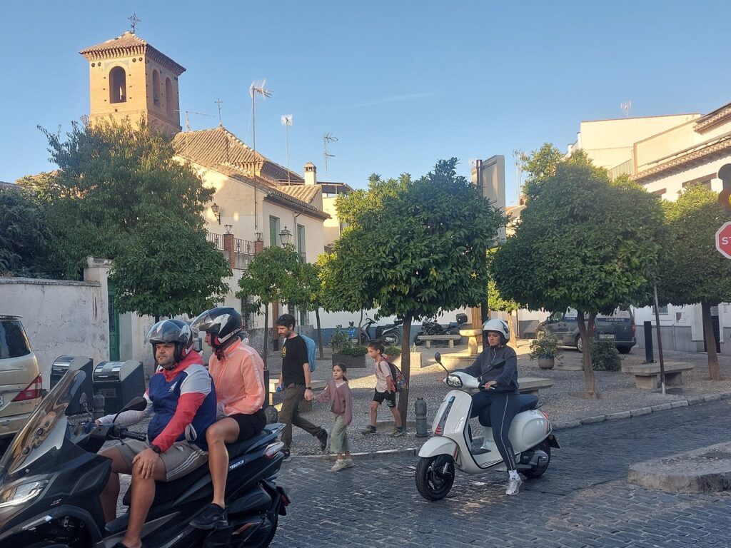Grenade se découvre à pied, en particulier le quartier historique de l’Albaycin, quartier tout en pentes très raides, mais déambulation très agréable à pied, dans le calme, sous réserve de ne pas prendre quelques rue étroites, mais circulées.