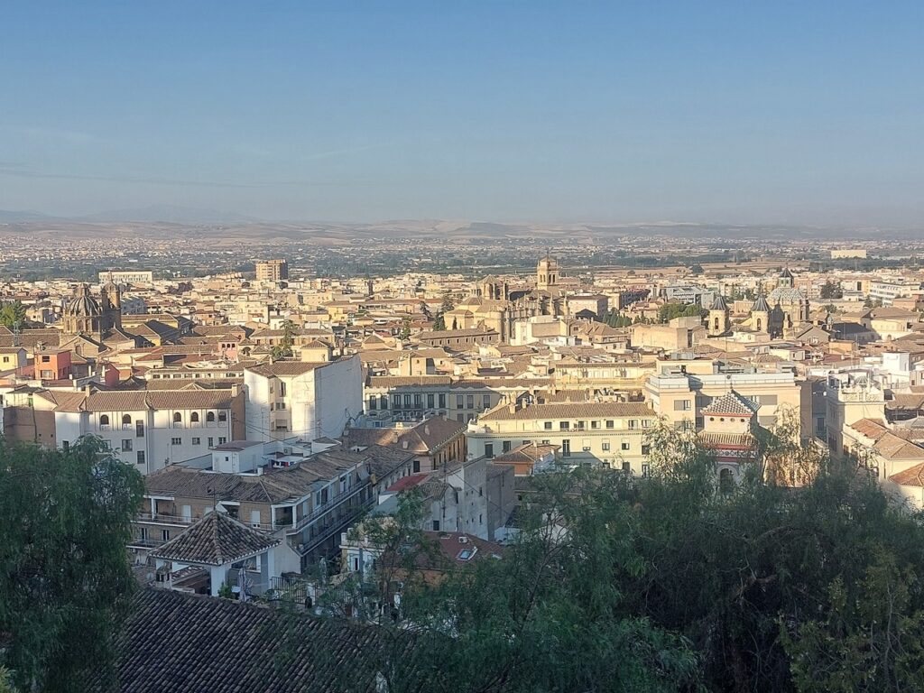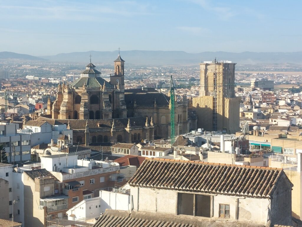 Vue sur le centre-ville de Grenade. L’église au centre, c’est la cathédrale.