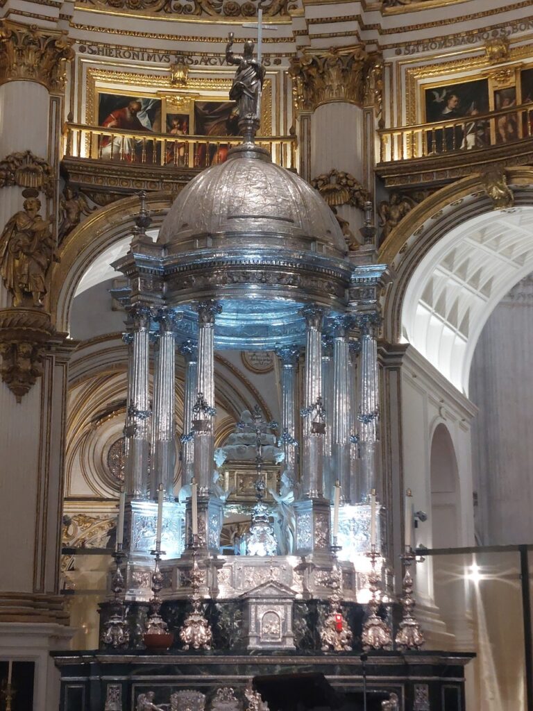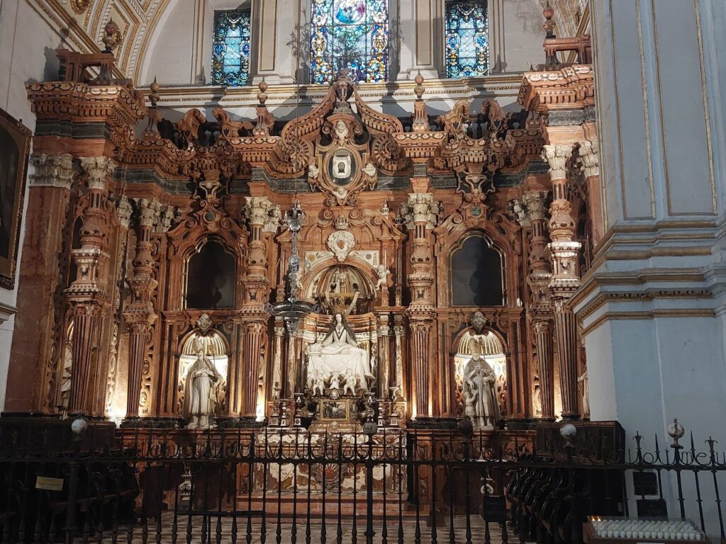 Le Capilla Real. La Chapelle Royale. Elle fut construite sur l’ordre de Ferdinand d’Aragon et Isabelle de Castille car ils voulaient être enterrés dans la ville où avait eu lieu leur plus grande victoire sur les musulmans. En effet, la prise de Grenade met fin à la présence musulmane en Espagne en 1492.