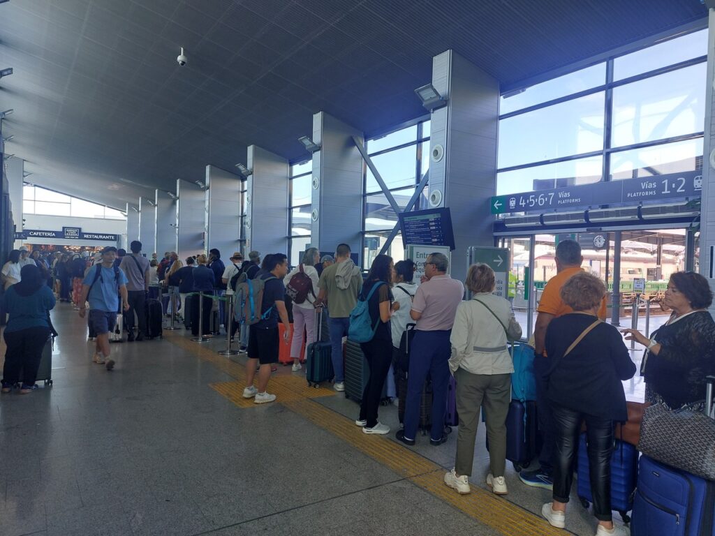 La gare de Grenade. Comme en France, filtrage pour accéder au train.