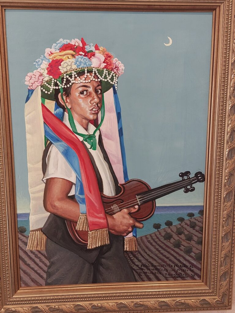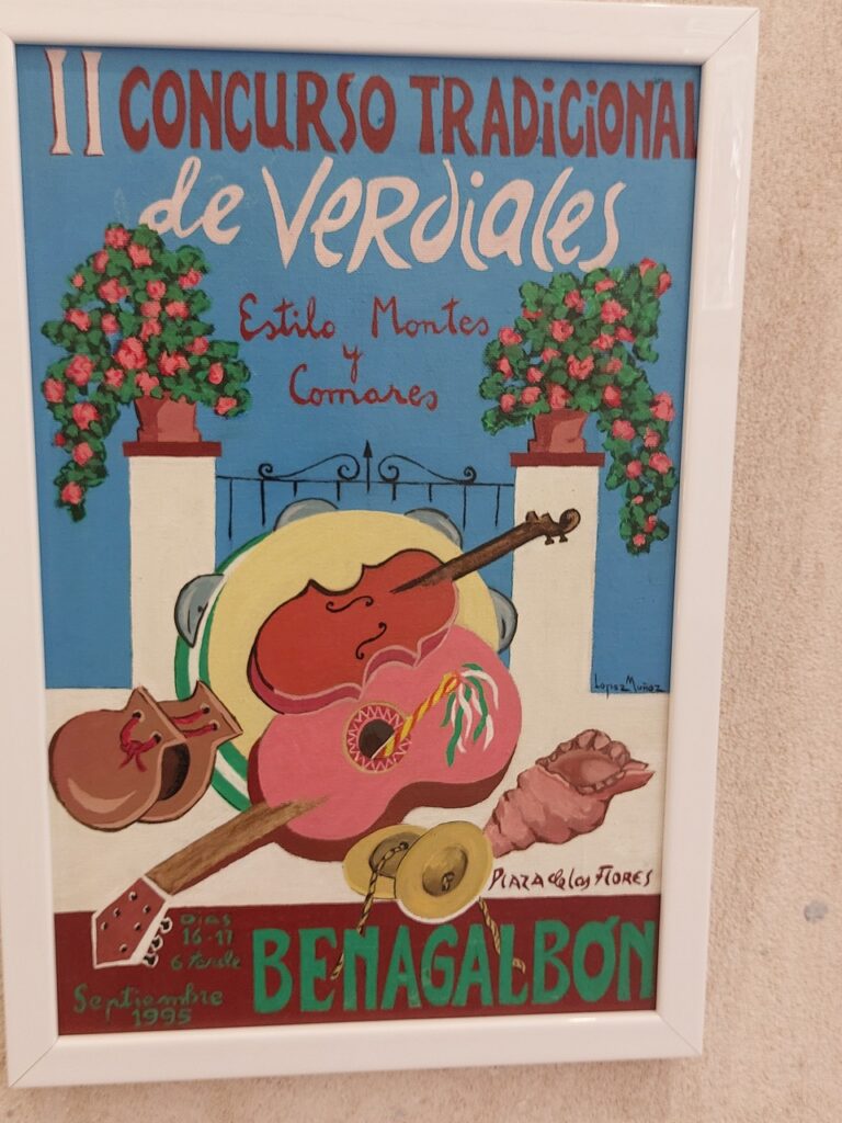 Exposition sur les Verdiales dans la forteresse de Bezmiliana. Les verdiales sont des fêtes populaires espagnoles accompagnées d’une formation musicale appelée panda. Création artistique paysanne qui provient de certaines zones de la province de Malaga. Les verdiales constituent un style particulier de chant et de danse, accompagnés d’un groupe de musique composé d’un violon, de deux à quatre guitares, d’un tambourin, d’au moins deux cymbales, de castagnettes et parfois d’une mandoline. Cet ensemble de chanteurs, danseurs et musiciens est appelé en argot la Bande de verdiales et les spectacles se nomment la Fête des verdiales. Le mot verdiales provient de la région d’oliveraies de Málaga, où se cultive un type d’olives nommé verdial, qui restent vertes une fois mûres.