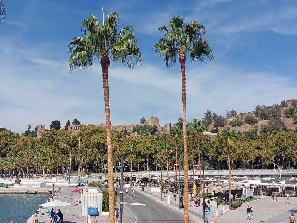 Arrivée sur Malaga. On aperçoit la forteresse.