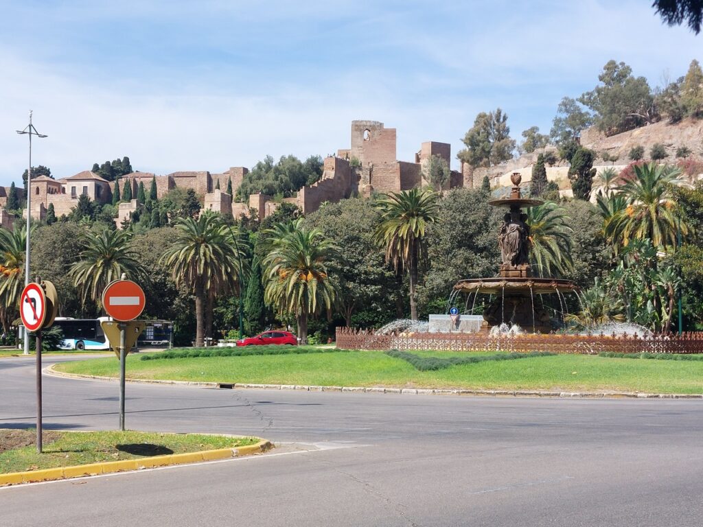 La forteresse de Malaga (l’Alcazaba) et la fontaine des Trois Grâces.