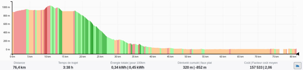 Très bel itinéraire sans circulation jusqu’au bord de mer à Vélez-Malaga (50 premiers kilomètres). Il reste une trentaine de kilomètres pour rejoindre Malaga, circulation très supportable, mais à 7-8 kilomètres de Malaga, une portion très pénible, le bord de mer est en sens unique, boulevard à deux voies dans le même sens, rien de prévu pour les vélos. Le boulevard dans l’autre sens, celui pour aller vers Malaga, est à 200 mètres et ce sont tous les deux des autodromes où les véhicules roulent vite.