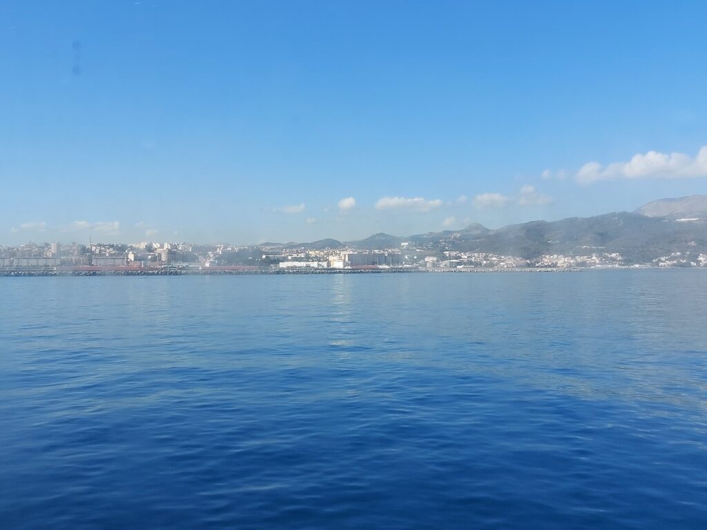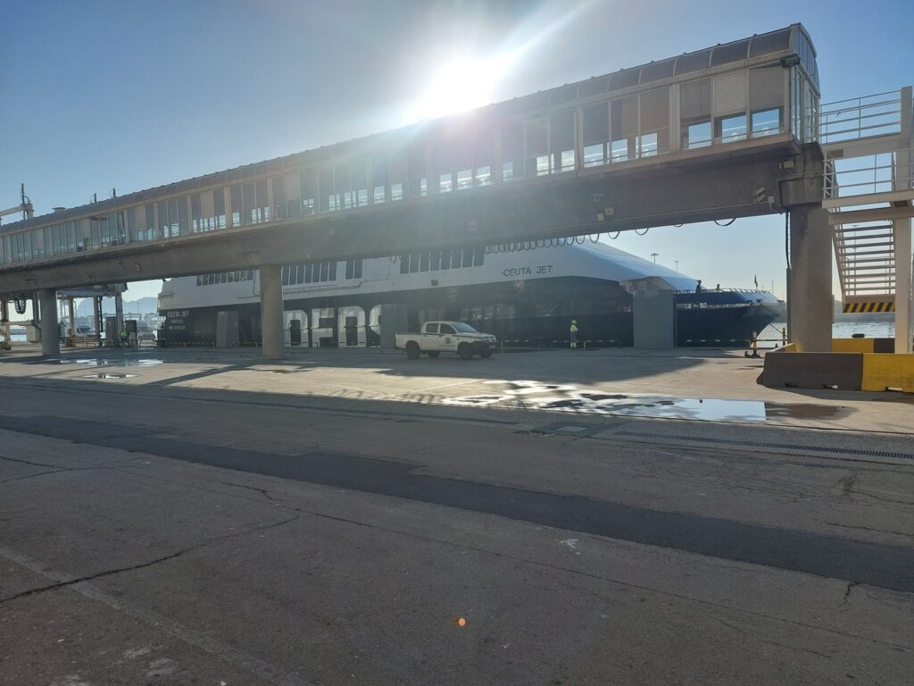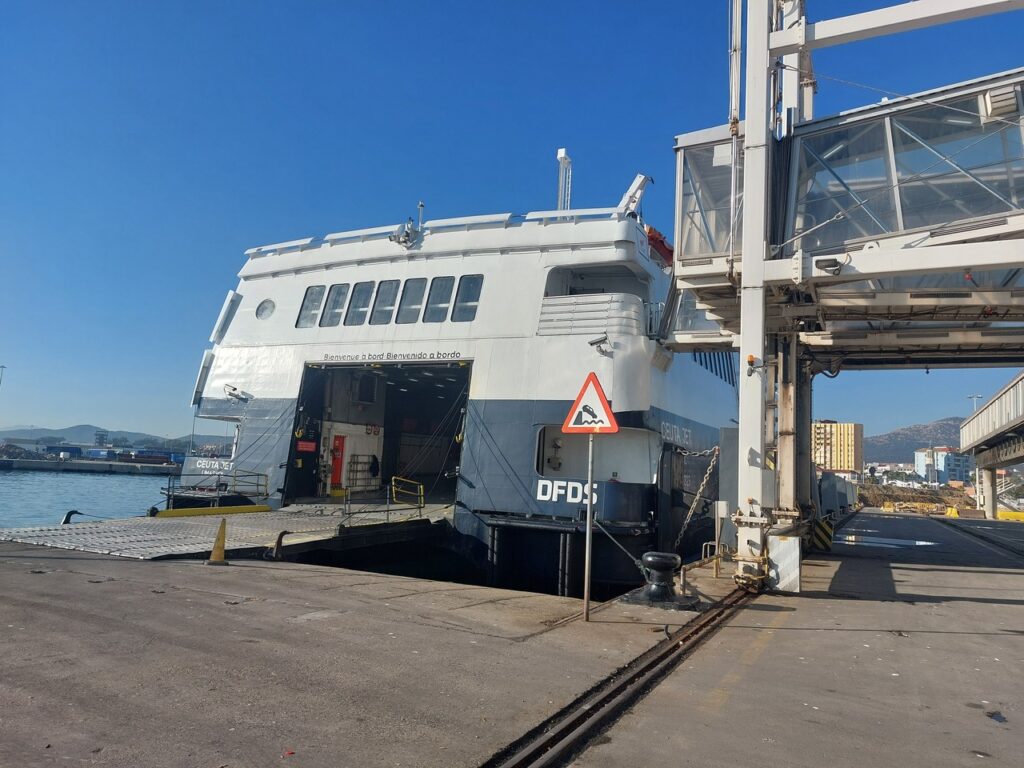 Ferry FRS de d’Algeciras à Ceuta. Départ 10h30, Arrivée 11h30, le détroit de Gibraltar fait une quinzaine de kilomètres de large.