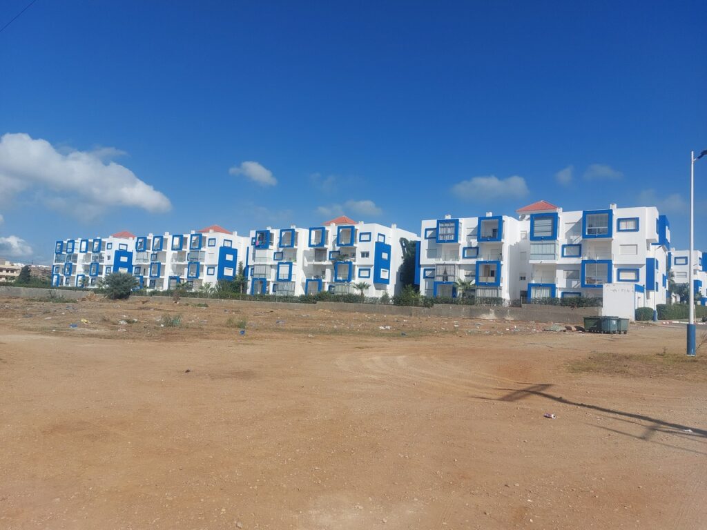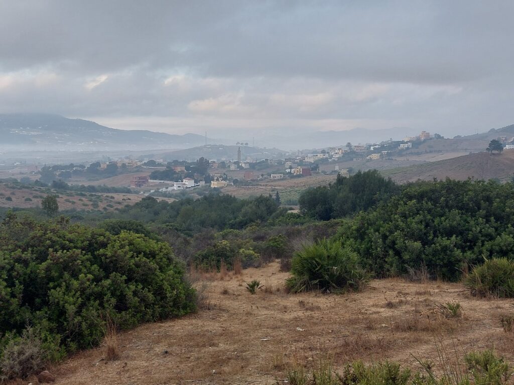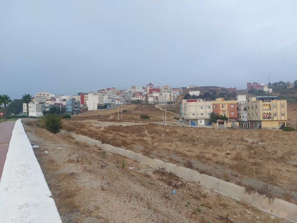 Contraste entre la campagne, la station balnéaire de Cabo Negro, la ville de Martil (juste à côté de Cabo Negro), Tétouan.