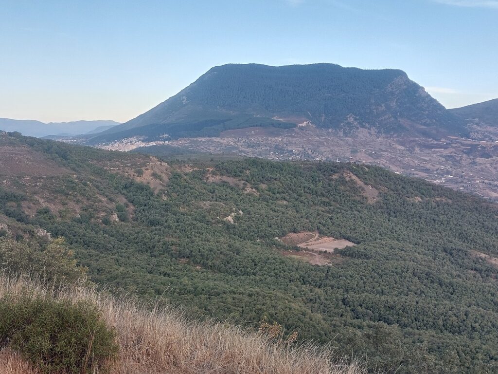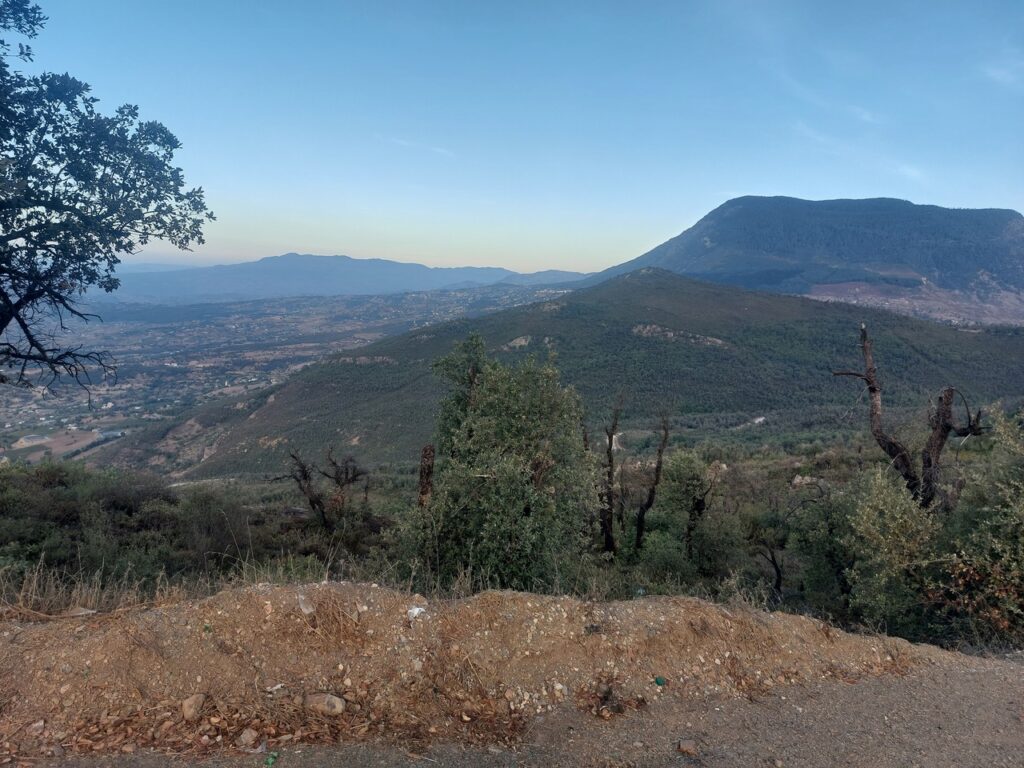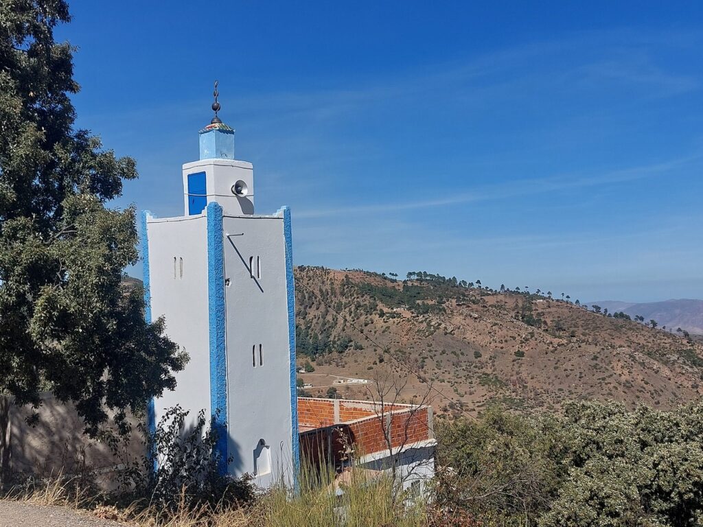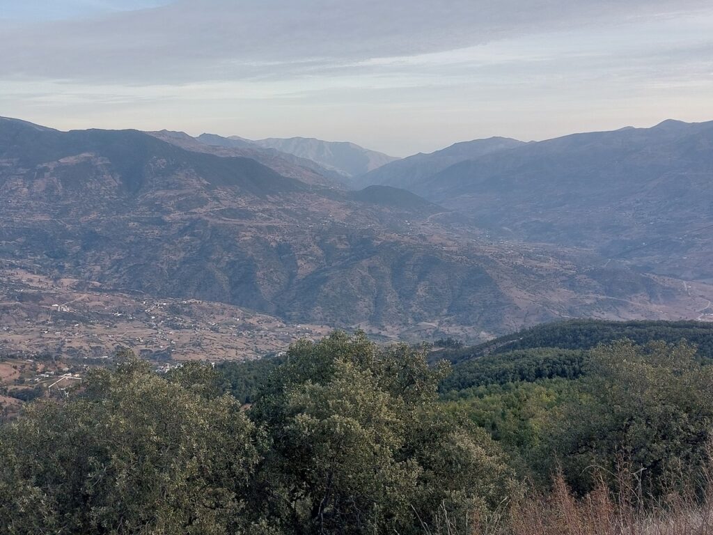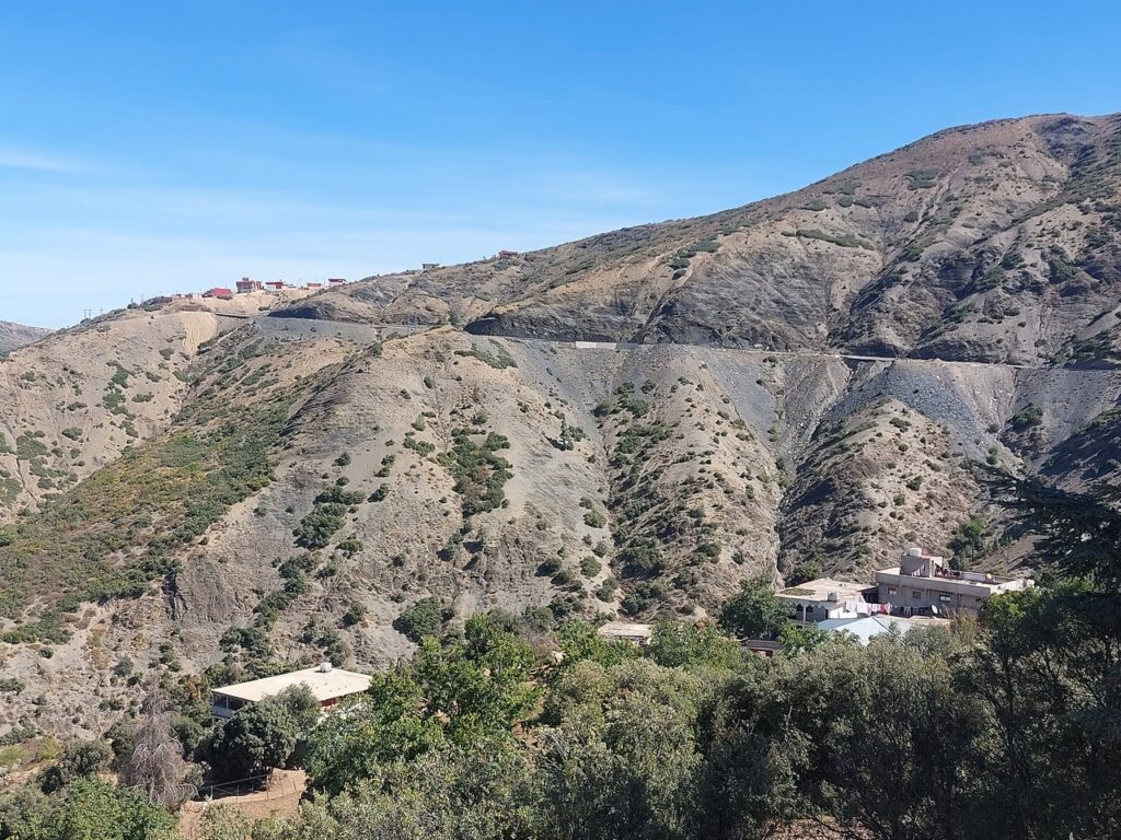 J’ai pris un petit-déjeuner local (marocain) dans un café à Issaguen (2 oeufs sur le plat, un quartier de vache qui rit, un ravier de mélange d’olives vertes et noires, et de l’huile d’olive, le tout avec une demi-galette de pain pour éponger le tout). Mais j’ai oublié de prendre une photo de la ville elle-même. En sortant, je suis très étonné de voir un énorme chantier d’urbanisation (on en voit ici qu’une petite partie). Issaguen est le seul village entre Bar Bered et Targuist. Il est en train de se transformer en ville, mais avec quels habitants ?