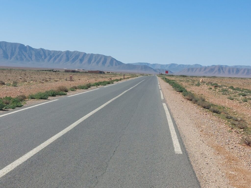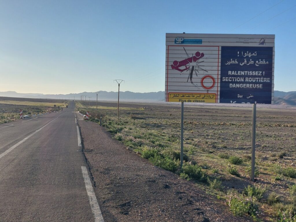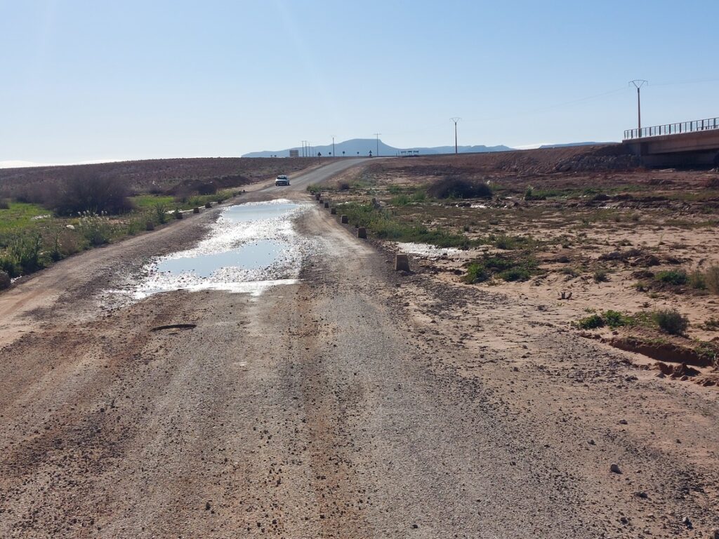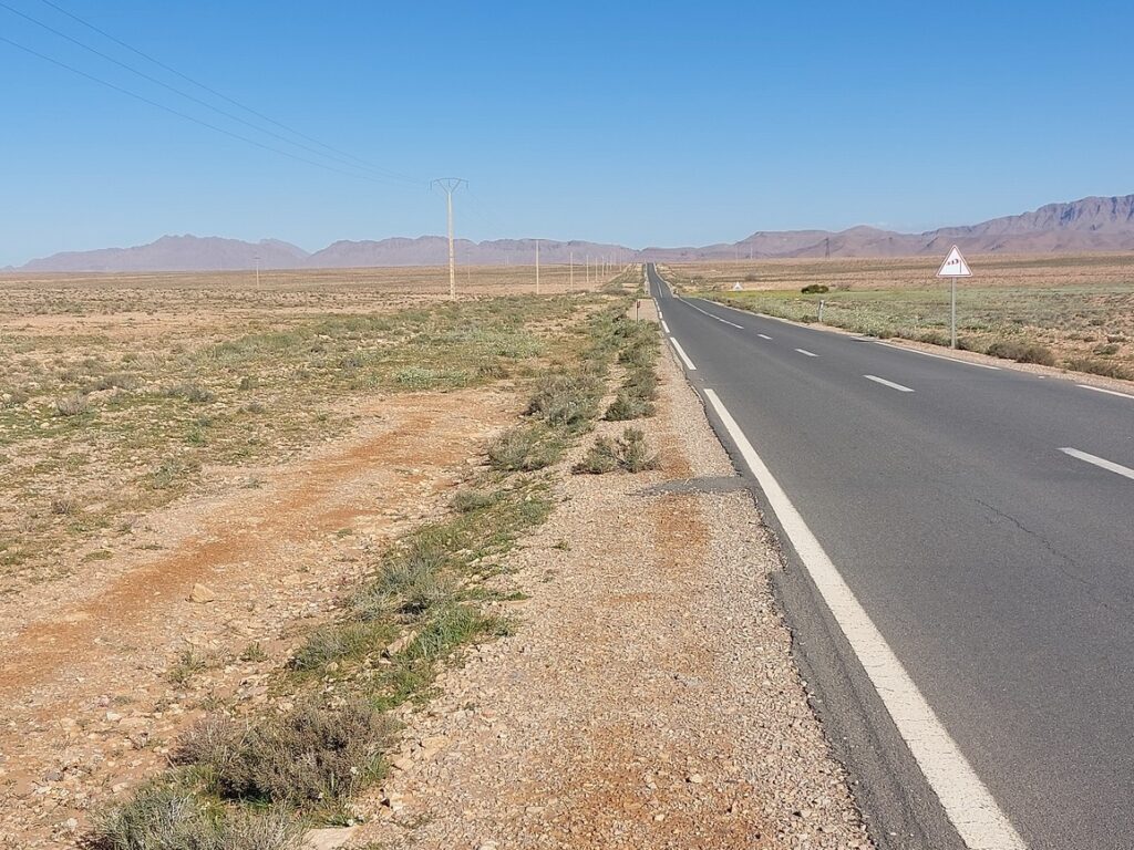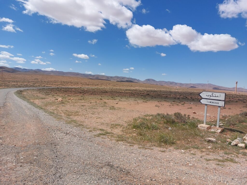 Bifurcation vers El Mengoub … à 54 km, répertorié par Google Maps, mais pas par OpenMap.