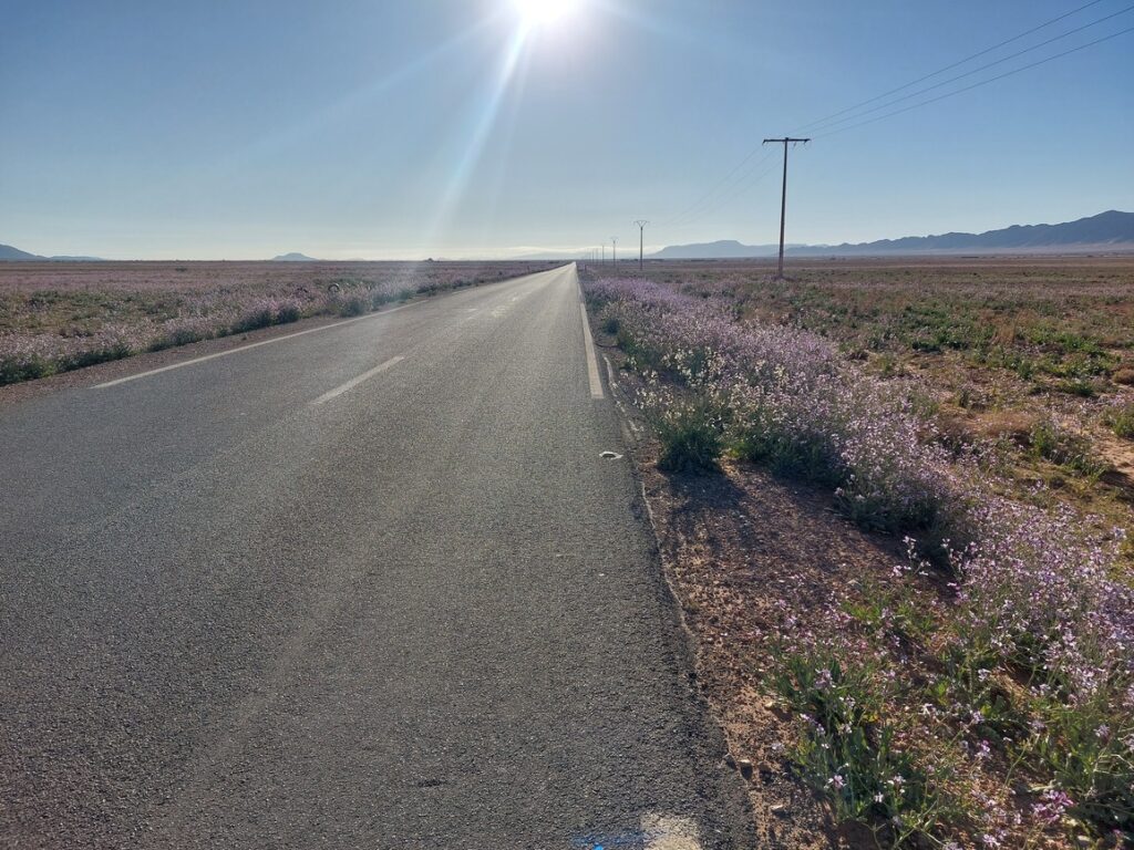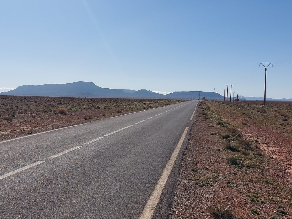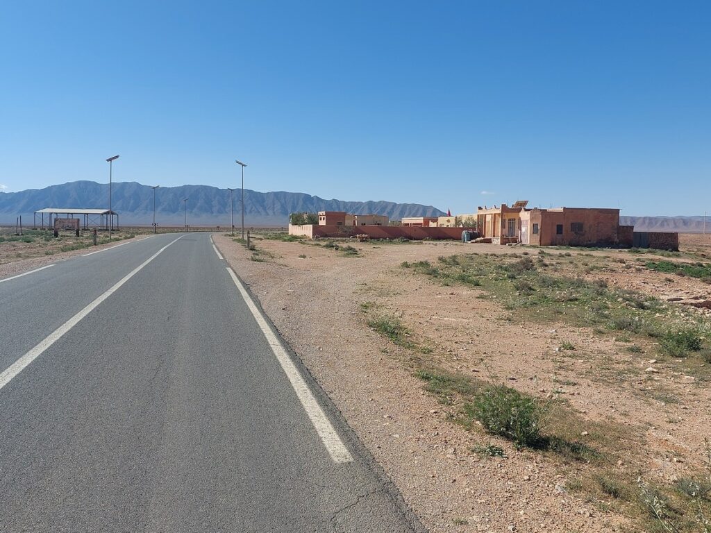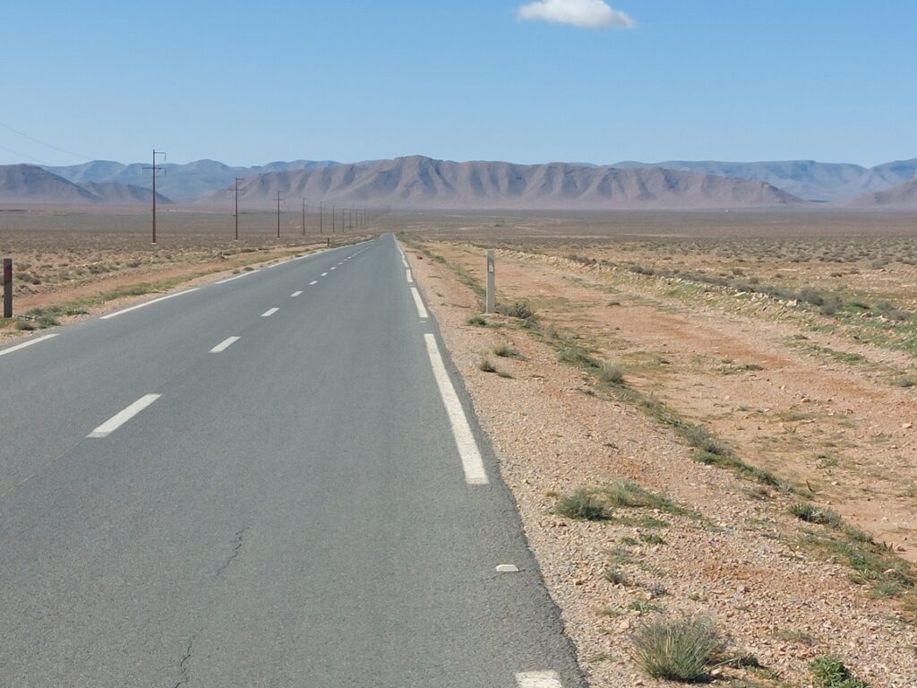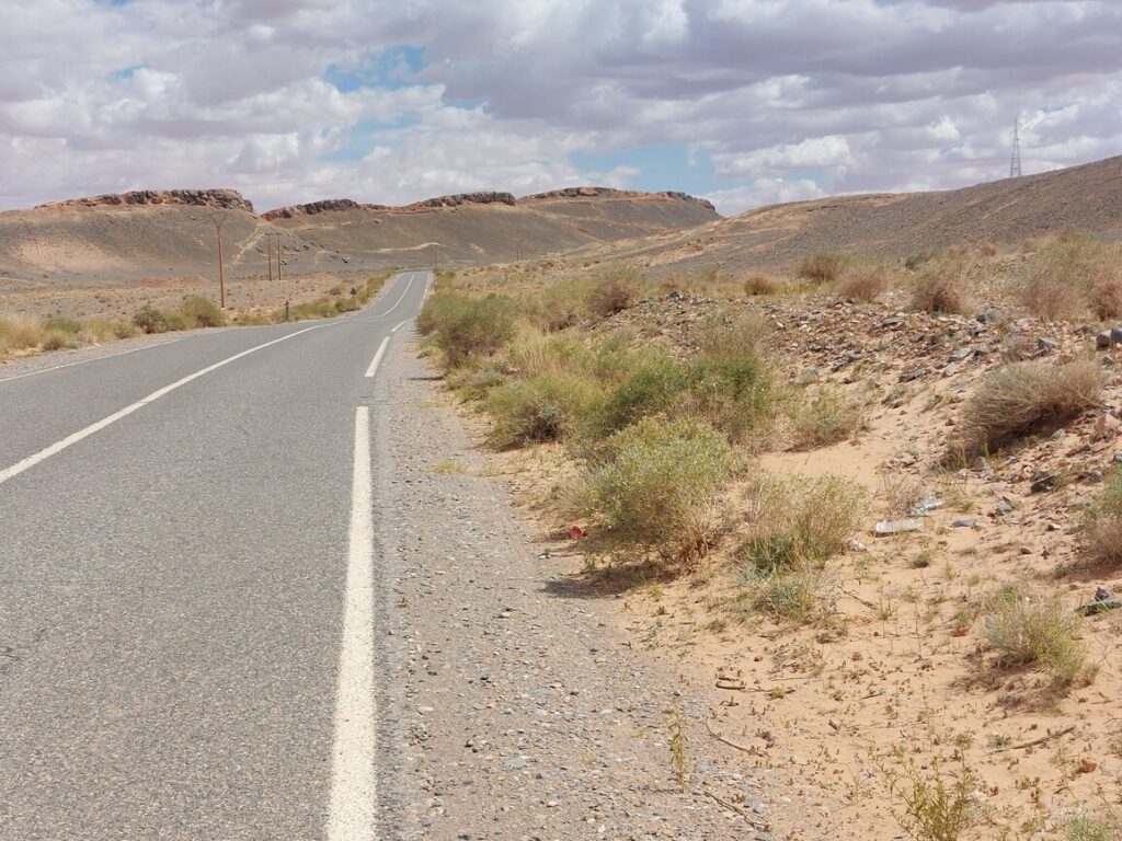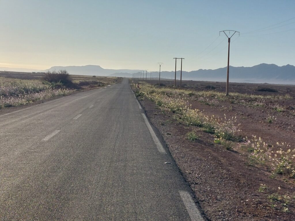 Bifurcation vers El Mengoub … à 54 km, répertorié par Google Maps, mais pas par OpenMap.
