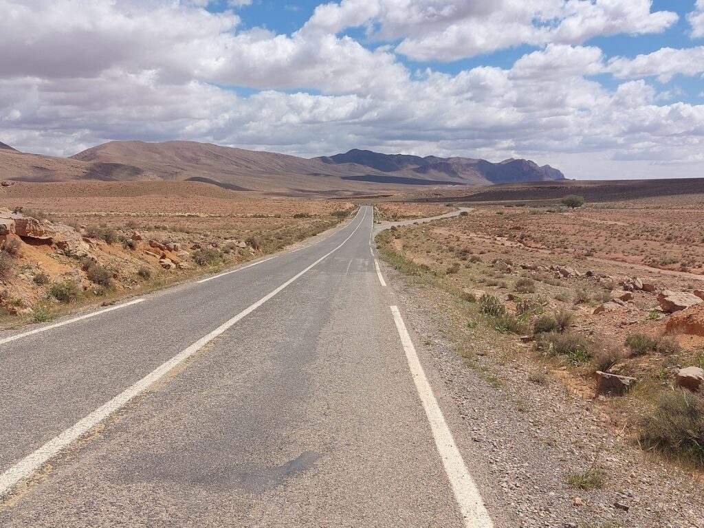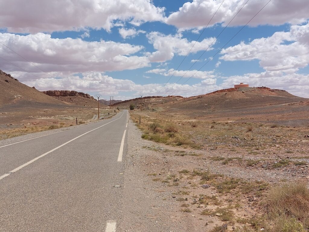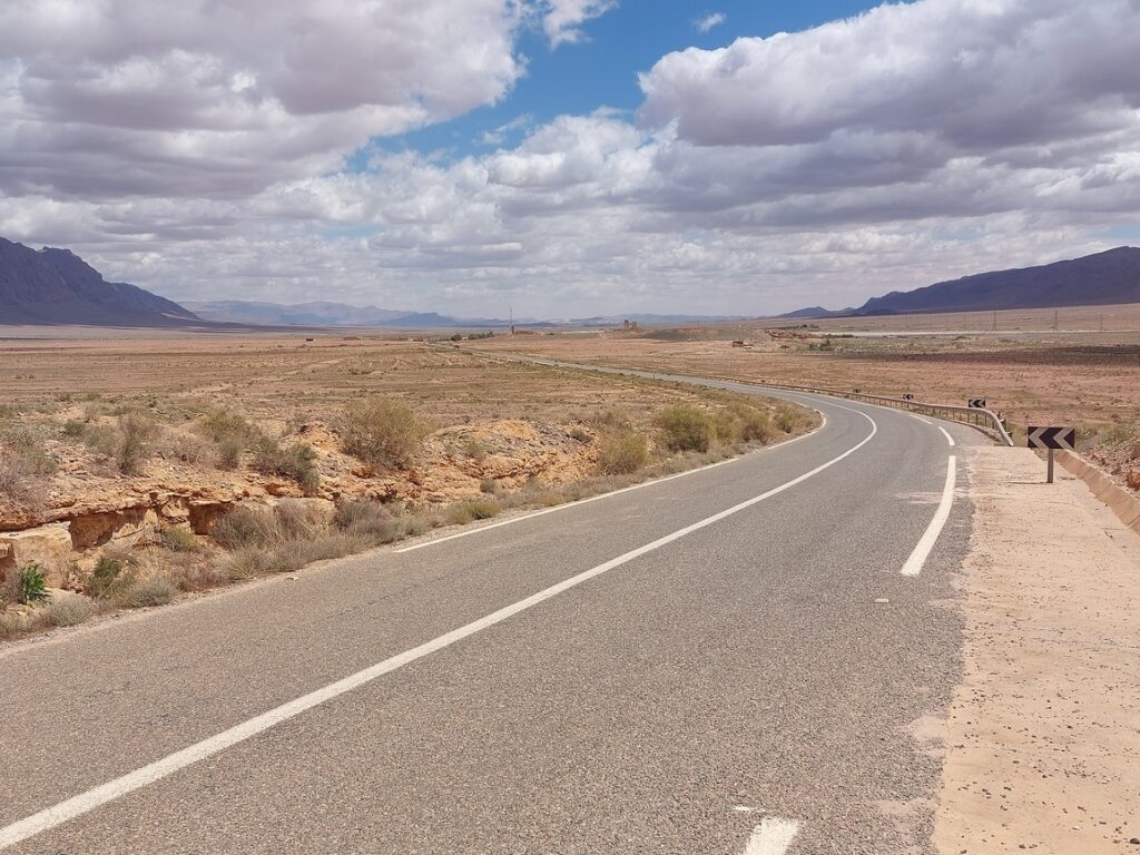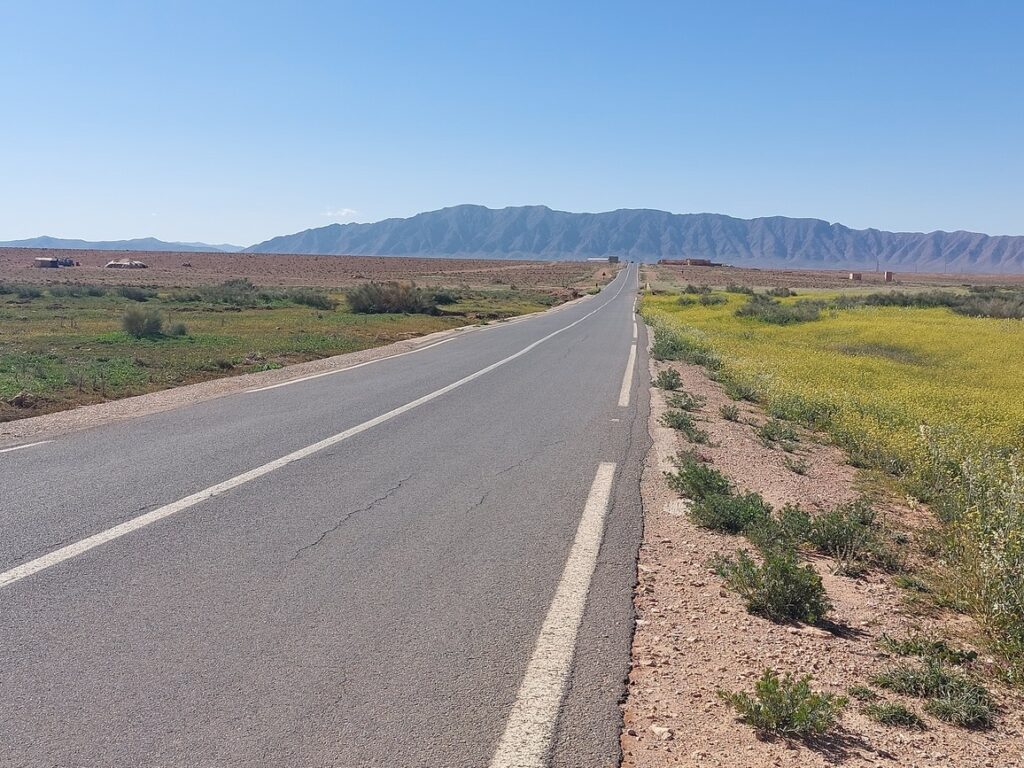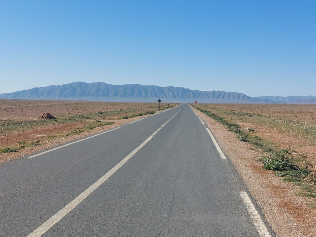 Bifurcation vers El Mengoub … à 54 km, répertorié par Google Maps, mais pas par OpenMap.